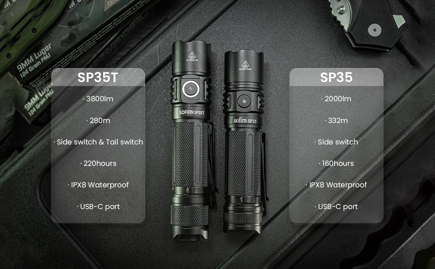 Emissor: 1x LED XHP50B (6000-6500K)(o primeiro lote de SP35T usou LED SFN43 antes e agora foi atualizado para LED XHP50B)